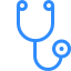 A cat laying on an exam table has its heartrate checked via stethoscope